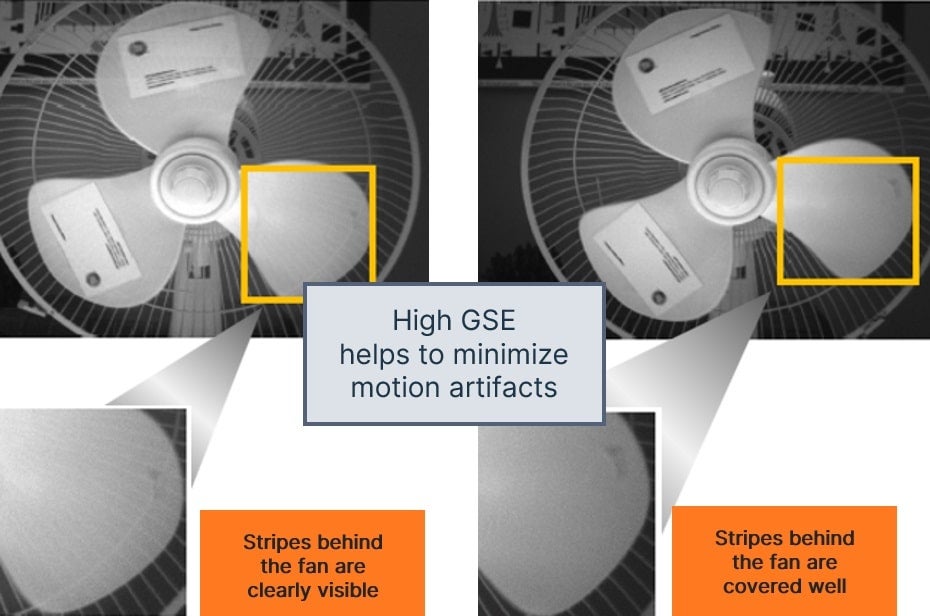 - Minimized motion artifact (caused by either the object/target or camera motion e.g. in case of hand held applications)