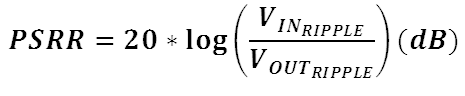 PSRRは、入力源からのリップル電圧を遮るLDOの能力を示しており、下記の公式で表すことができます。