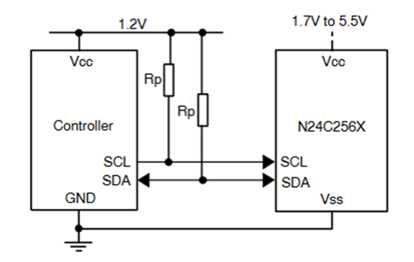 N24C256Xが登場するまでは、従来のEEPROMを最先端の1.2Vマイクロプロセッサーと連携して動作させるには、電圧レベルシフターの形で追加回路を導入する必要がありました。