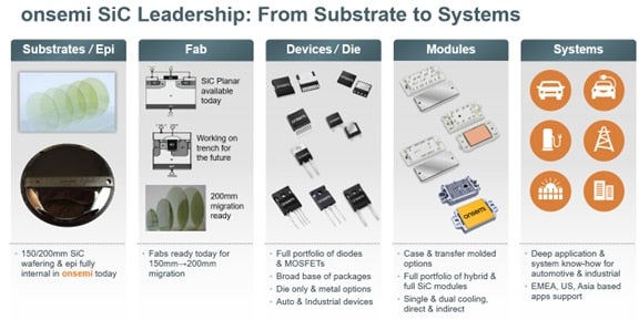 With the growth of key applications that utilize SiC technology such as automotive and renewable energy, product availability is a concern. The concern seems to be based upon the misperception that SiC products are difficult to manufacture and production capacity is limited. One of the issues is the multi-stage process is often split between different companies. onsemi is a large-scale supplier of SiC and solutions with end-to-end supply capability.