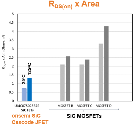- The onsemi EliteSiC cascode JFET device enables smaller die size for a given RDS(ON), and mitigates the gate oxide reliability concerns typical in SiC MOSFETs
