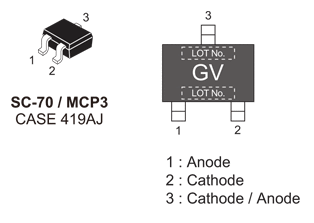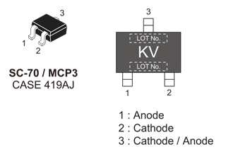RF ダイオード、VHF、UHF、AGC 用のデュアル・シリーズ PIN