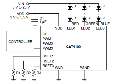 LED ドライバ、RGB、3 チャネル