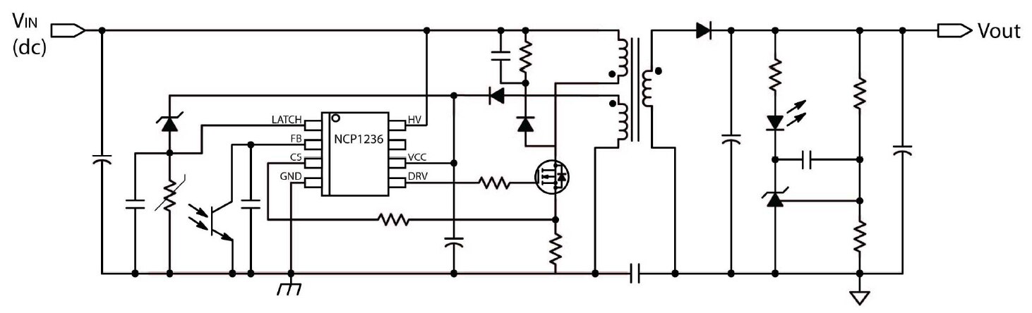 コントローラ、固定周波数、電流モード、フライバック・コンバータ用