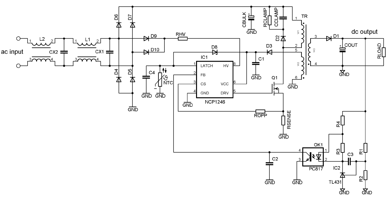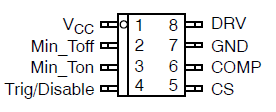 コントローラ、固定周波数、電流モード、フライバック・コンバータ用